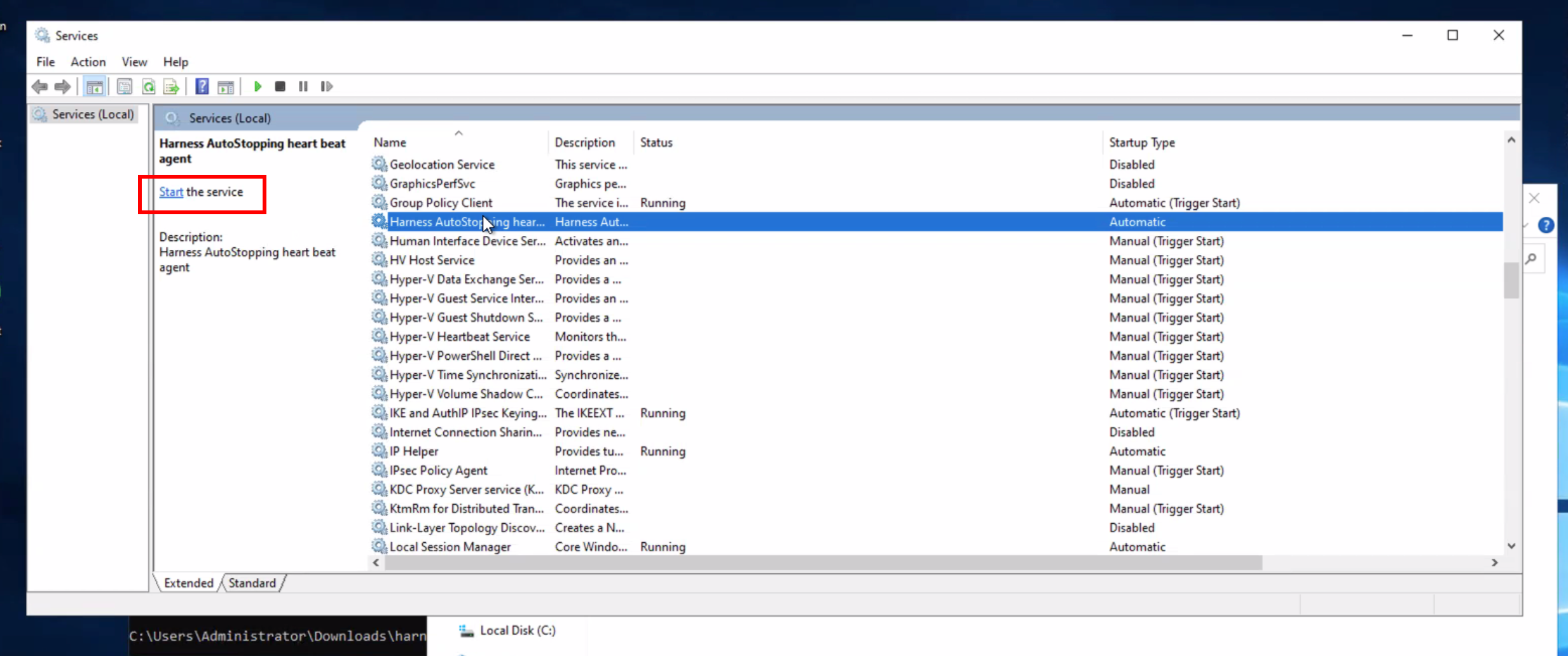 You can validate the service is running by opening Services in Windows and locating the Harness Autostopping Heartbeat service.