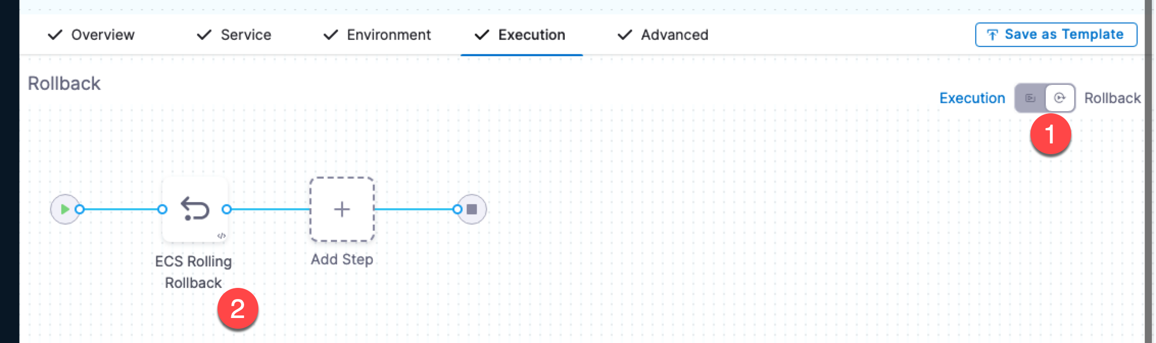 - ECS Service Setup prepares rollback data at the start of deployment.