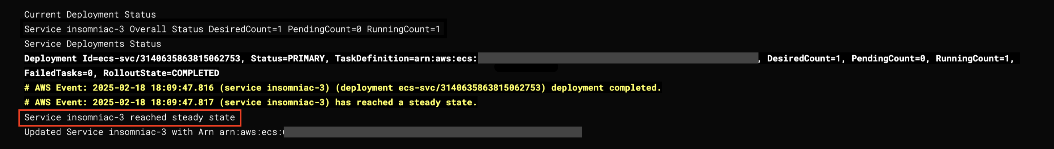 | Deployment | Rollback Data Captured | Task Definition Created | Result |