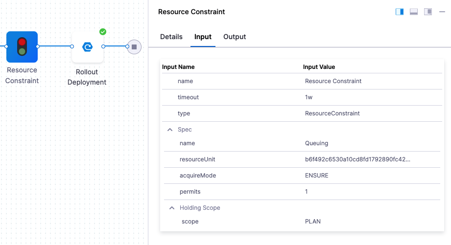 Harness will only allow one Stage to deploy to the same Service and Infrastructure Definition combination at the same time. The Stages are typically in different Pipelines, but Resource Constrain also apply to Stages in the same Pipeline run in parallel.