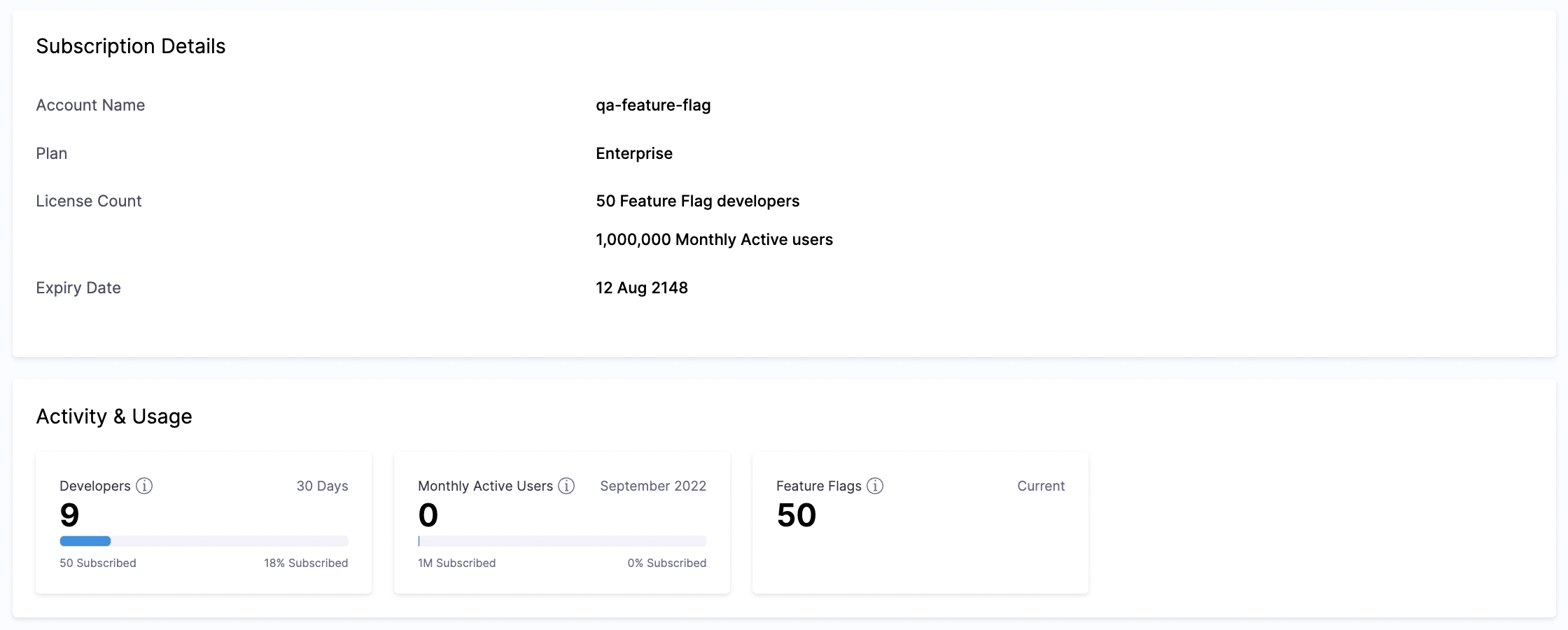 This topic describes how to view which Harness modules you are currently subscribed to, and how to view the details of your subscriptions. On the Harness Platform, you can view the following subscription details: