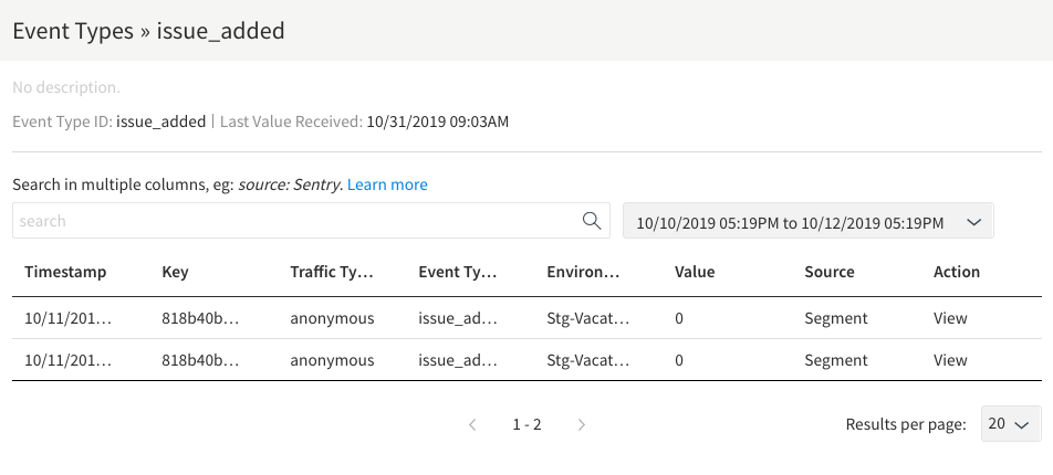 Note that the traffic type and key match up with what was sent in Segment. If you want to see that every detail of the event matches what was sent to Segment, then you can click on View for a specific event.