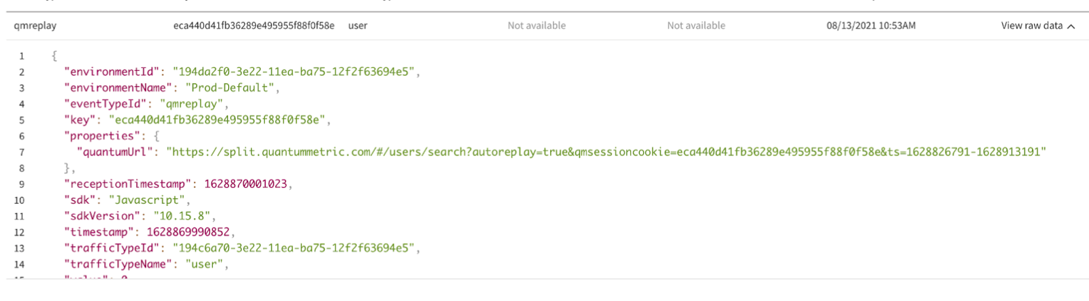Once you have the FME SDK configured with Quantum Metric, impressions display with Quantum Metric sessions identifiers in the Live tail view of Harness FME. In addition, the Live tail for events show qmreplay events with the linkback to Quantum Metric in a property: