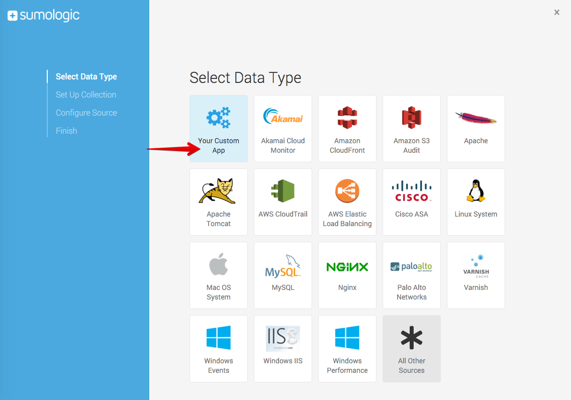 2. On the Select Data Type page click Your Custom App.