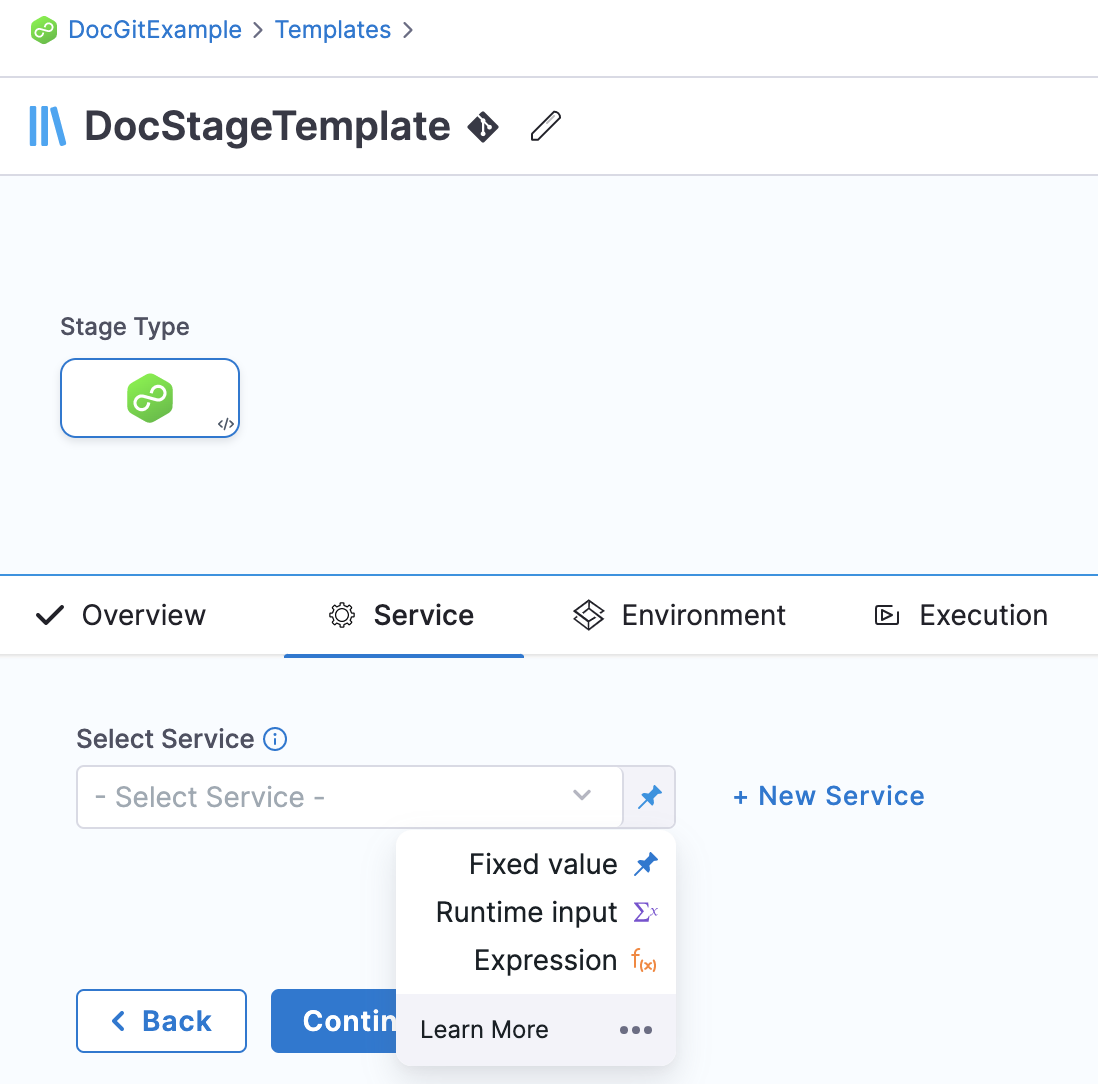 Select the type of deployment this stage must perform. A stage can deploy services and other workloads. The default selection is Service.