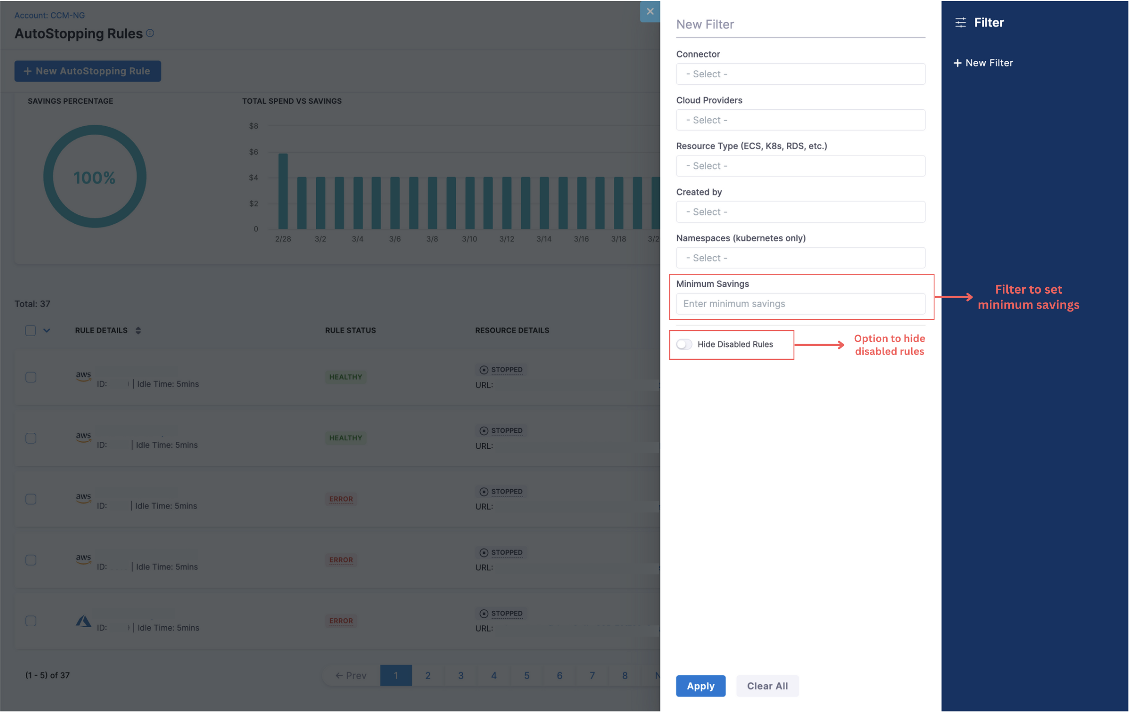• AutoStopping Logs Improvements: AutoStopping logs now include pagination and 30-day retention. You can download logs and select your preferred timezone when exporting. [CCM-25281]