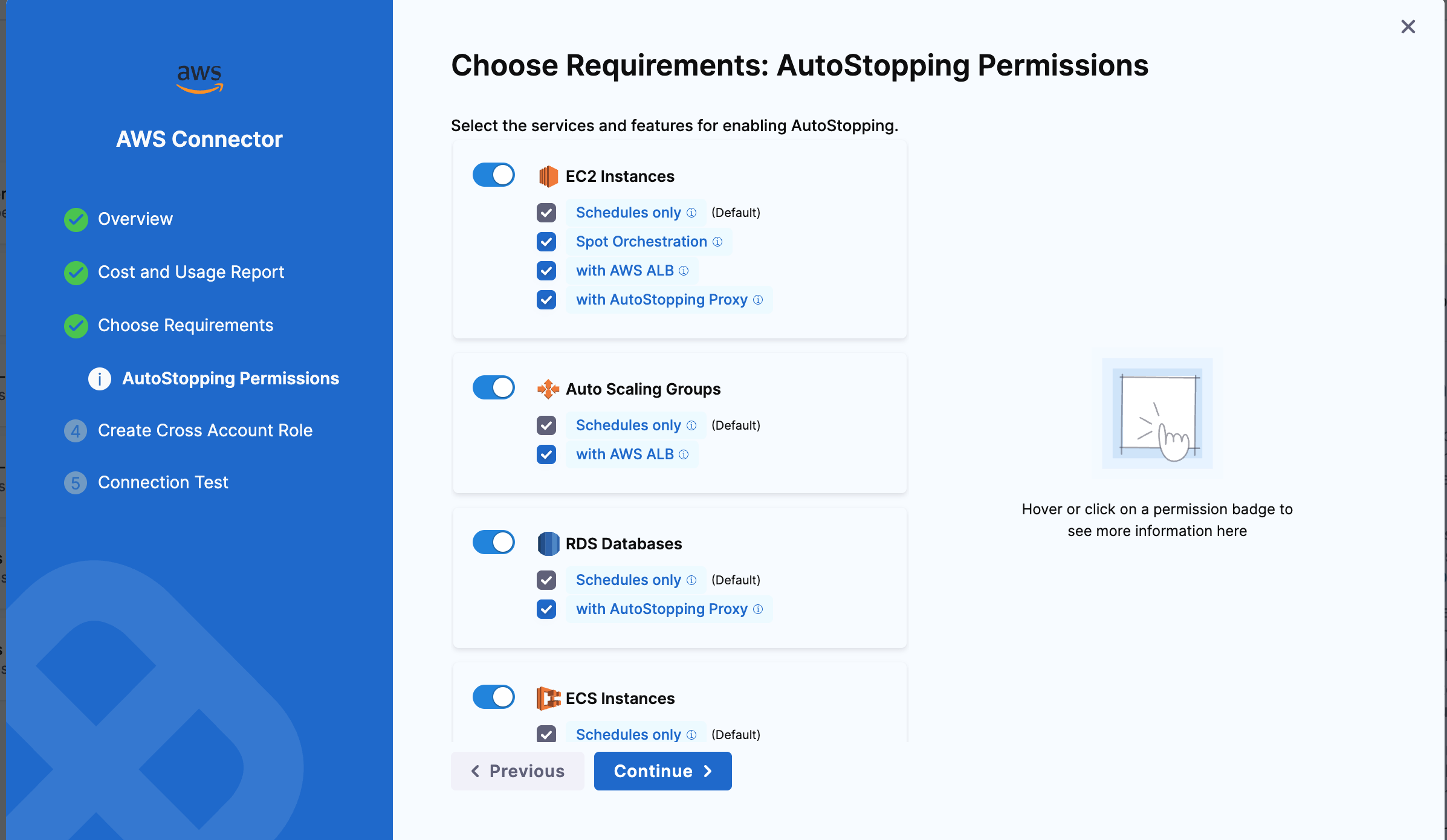 As part of Azure Connector validations for Inventory and AutoStopping, we're now checking whether the service principal has the required roles for these features: Reader role for Inventory and Contributor role for AutoStopping. These checks will run whenever Test Connector APIs are hit for CeAzure connectors.