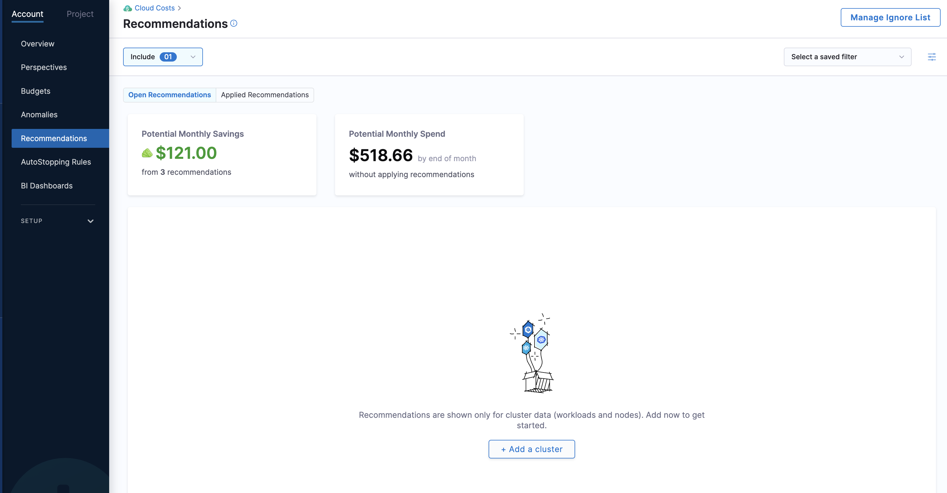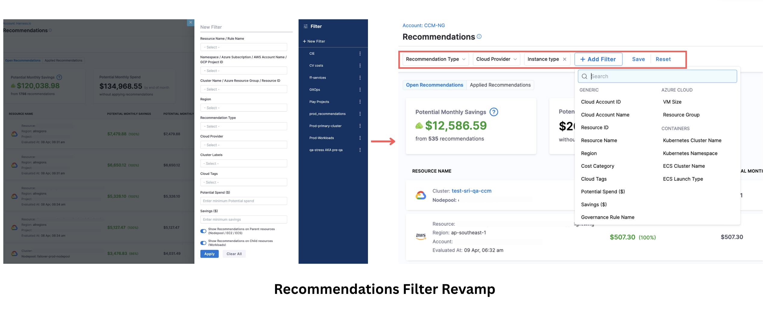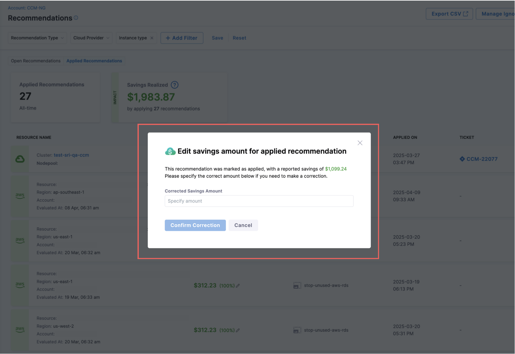 • Applied Recommendations Chart Aggregation: Improved the Recommendations vs. Savings chart to prevent clutter when large time ranges are selected. Aggregation now switches to monthly when the range exceeds three months and to yearly when it exceeds one year. [CCM-25390]