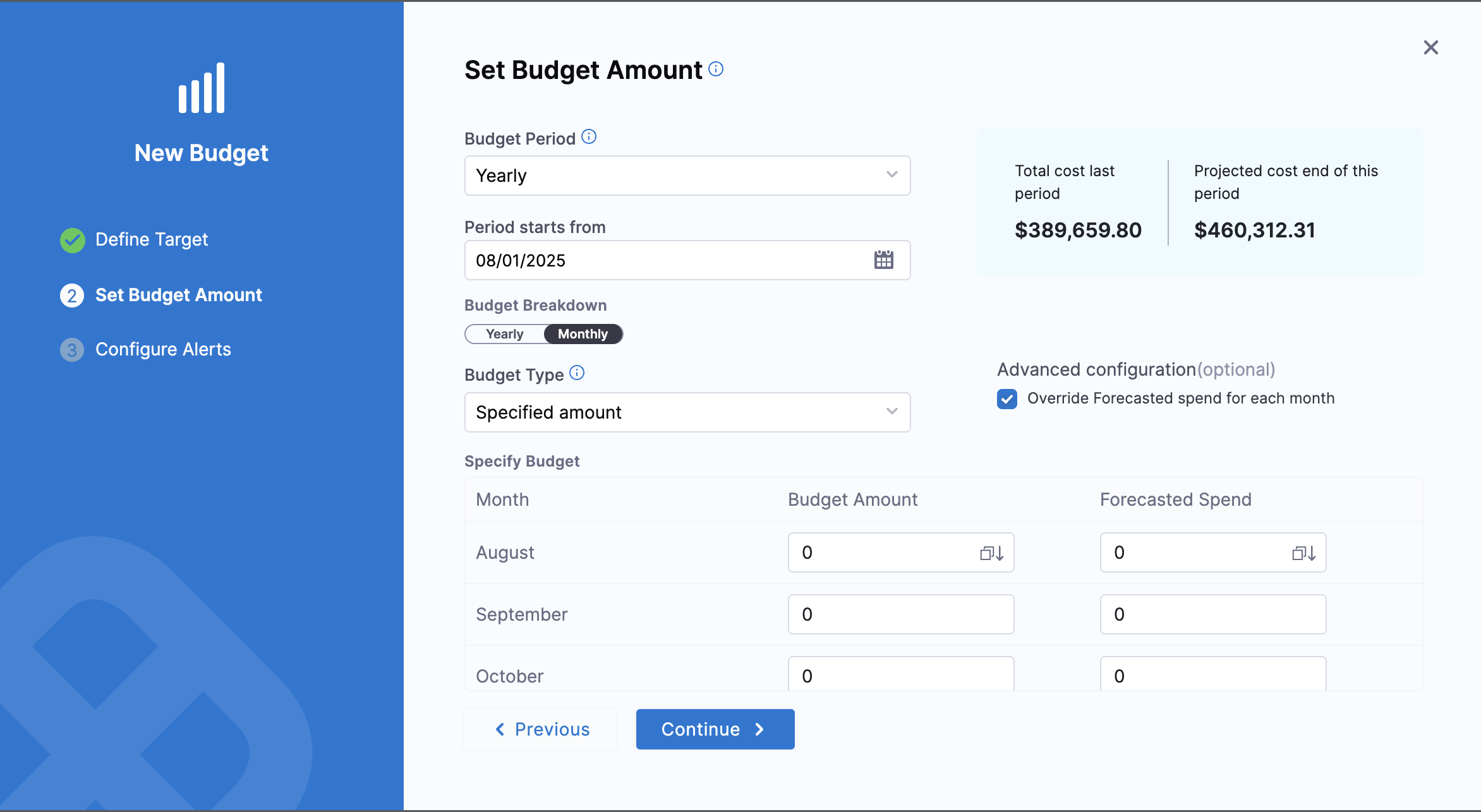 • Slack notifications for Budgets (CCM-7816) You can now set the notification channel to Slack and add multiple webhook URLs when creating a budget. For more information, refer to Create a Budget.