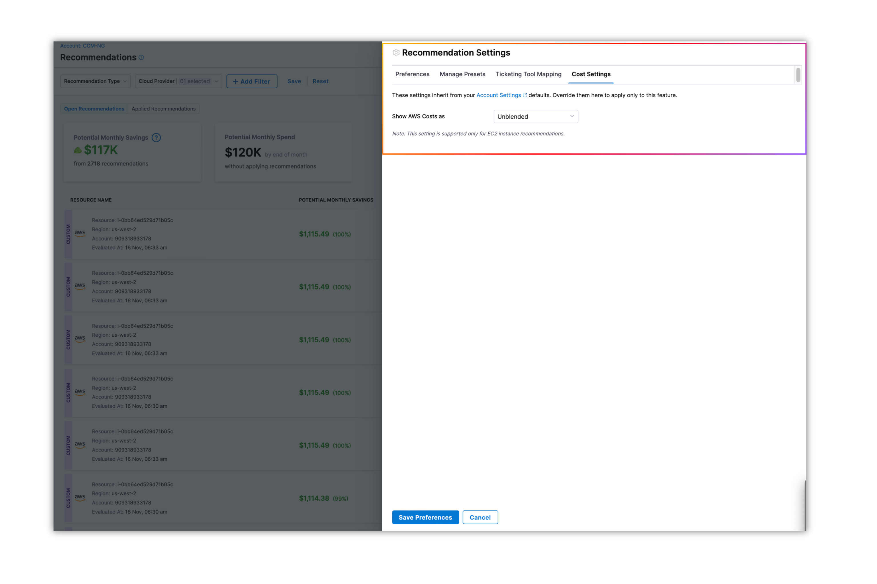 For more information, refer to Optimize AWS ECS Costs with Recommendations.