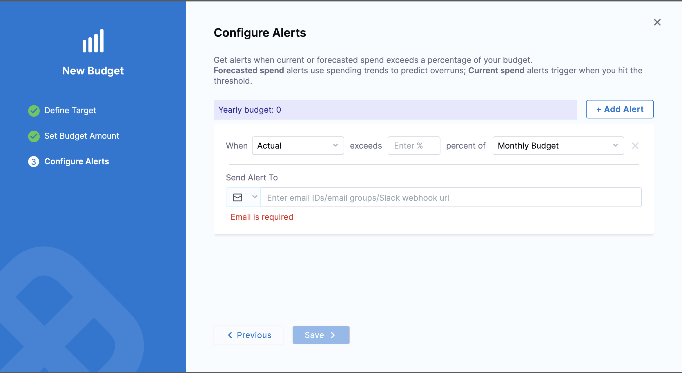 • Improved Budget Alert Email Accuracy: Daily budget alert emails now display the date when the cost was actually incurred, rather than when the alert was generated. This improves accuracy when alerts are processed with a delay due to cloud provider cost data latency. [CCM-29490]
